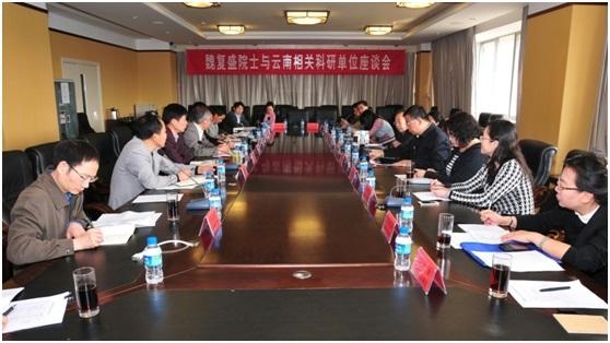 当天上午, 魏复盛院士与云南省相关科研单位在云南农业大学座谈。座谈会由云南农业大学副校长葛长荣主持,省科技厅侯树谦副厅长、云南农业大学校长盛军分别介绍了相关情况。云顶集团7610三局、国家环境监测总站、省科技厅相关处室,省农科院、省环境科学院、省农业环境保护监测站的领导及代表参加了座谈会。魏复盛院士强调:云南具有生物多样性的优势,高原特色农业发展前途无限。但云南也是有色金属之乡,农田环境污染也存在一定隐患,我们应有效地进行防治。会上,大家还表达了希望魏院士到云南建院士工作站的愿望。(王京京)
