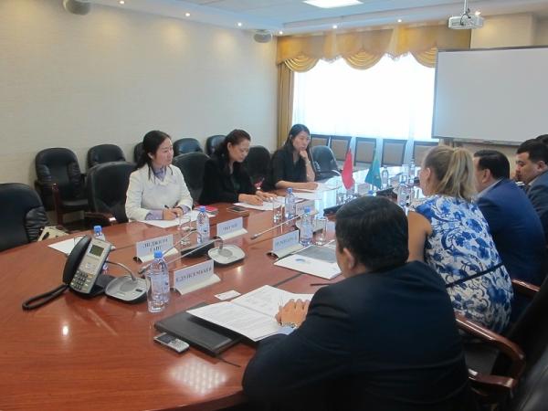 21号代表团还访问了哈萨克斯坦国立研究技术大学。与该校的主管外事、科研的副校长、矿山测量专业院士Tursbekov Serik Vakhitovich 、大地测量系主任、地质系主任以及相关地质、测量、土地复垦等相关矿业方向的10名教授进行了座谈。双方回顾了两国友谊源远流长,详细座谈了关于科研合作方向、实验室建设、人才培养方面的可操作流程,为进一步推动中哈双方的实质性合作提供了一个较好的交流合作平台。